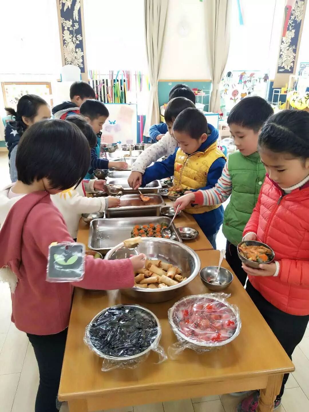 现在,每月一次的主题自助餐成为了孩子最为期待的节日之一。今后,徐汇实验幼儿园还将不断地在实践和反思中尝试新的菜式和创意,让孩子健康地成长,体验自主与快乐!