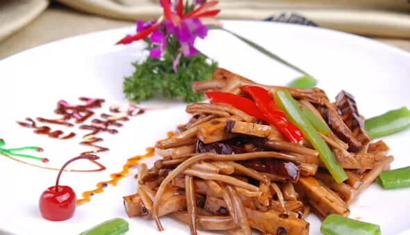 3)后放盐,生抽(不要放老抽,炒出来的菜发黑。)最后放味精。