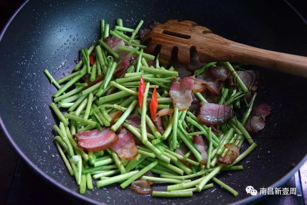 要做出上品乃至极品的藜蒿炒腊肉,对原料的要求很高。藜蒿必须是采自于鄱阳湖的野生嫩茎,腊肉必须是农家自己腌制的上乘的土猪腊肉。做配料用的韭菜,也必须是农家自己地里种出的香韭菜——做藜蒿炒腊肉,加些香韭菜,能更好地衬出藜蒿的原香;不加韭菜,味道要差得多。