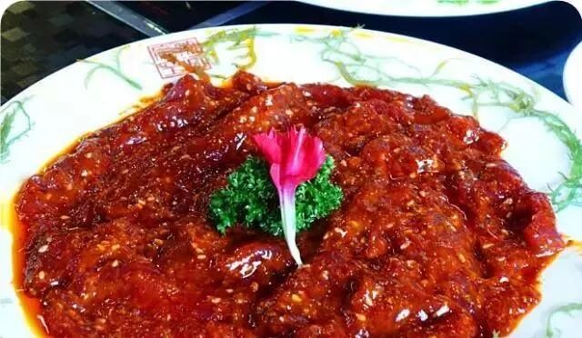 爆肚就是我们常吃的那种毛肚,量挺大的,红椒青椒放了很多,吃起来有点酱烧的感觉,热着吃口感还很不错,脆脆的一点都不老,不过记得要趁热吃哦!