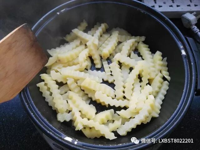 9.中小火煎炒至土豆条表皮微黄无水分。