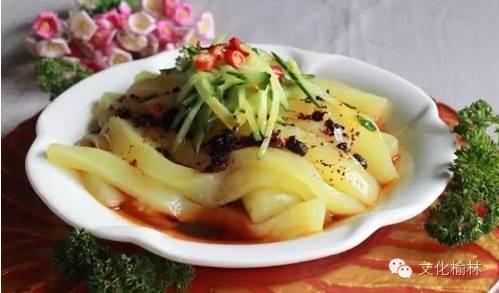 绥德特色小吃,为绥德人每天必吃的食品。以绿豆为原料,吃时切条,加上调料汤、醋、香油,色泽淡黄、清香适口,是待客的上品,风味甚佳。