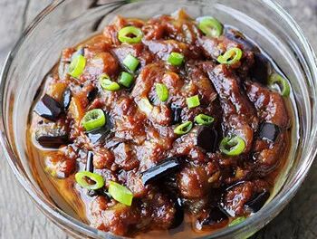 原料:面条、茄子、猪肉馅、油、葱、姜、料酒、蚝油、香油、甜面酱、大蒜、白糖