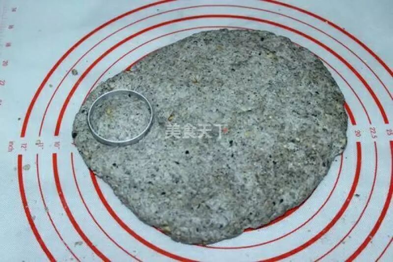 1. 低粉和泡打粉拌均匀 2. 放入糖和芝麻核桃粉拌均匀 3. 放入牛奶和淡奶油拌匀揉成团 4. 再将面团擀开 5. 用模具压出圆形 6. 将压好的面团放入烤盘里 7. 涂上蛋液,烤盘180度预热5分钟,上下烤20分钟即可 8. 成品图