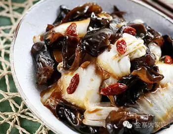 原料:大白菜、木耳、枸杞子、油、盐、葱、姜、蒜、生抽、淀粉、白糖、黄酒