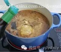 7. 倒入生抽和老抽,再撒入糖和盐,大火煮至卤汤沸腾,转小火焖煮1小时,香味溢出时,卤水搞定。
