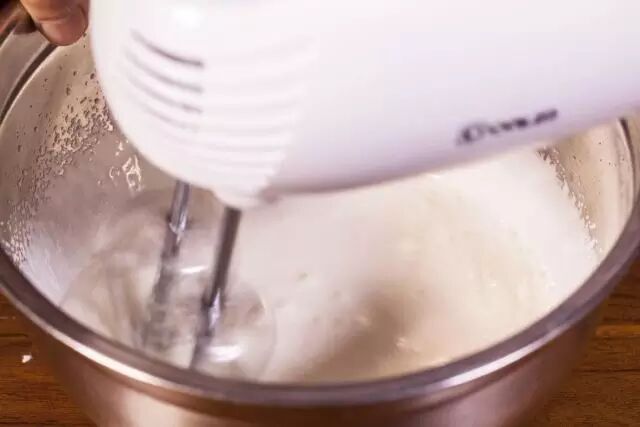 奶油打发(打至打蛋器提起能够拉出倒三角即可)