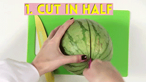 2、不脏手就能将西瓜切块的妙招~