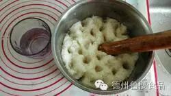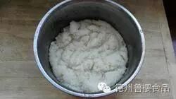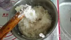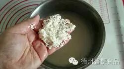 7.糯米揉搓碎放入盆中,加水20-30亳升开水(另用水壶烧开备用)切记放凉水