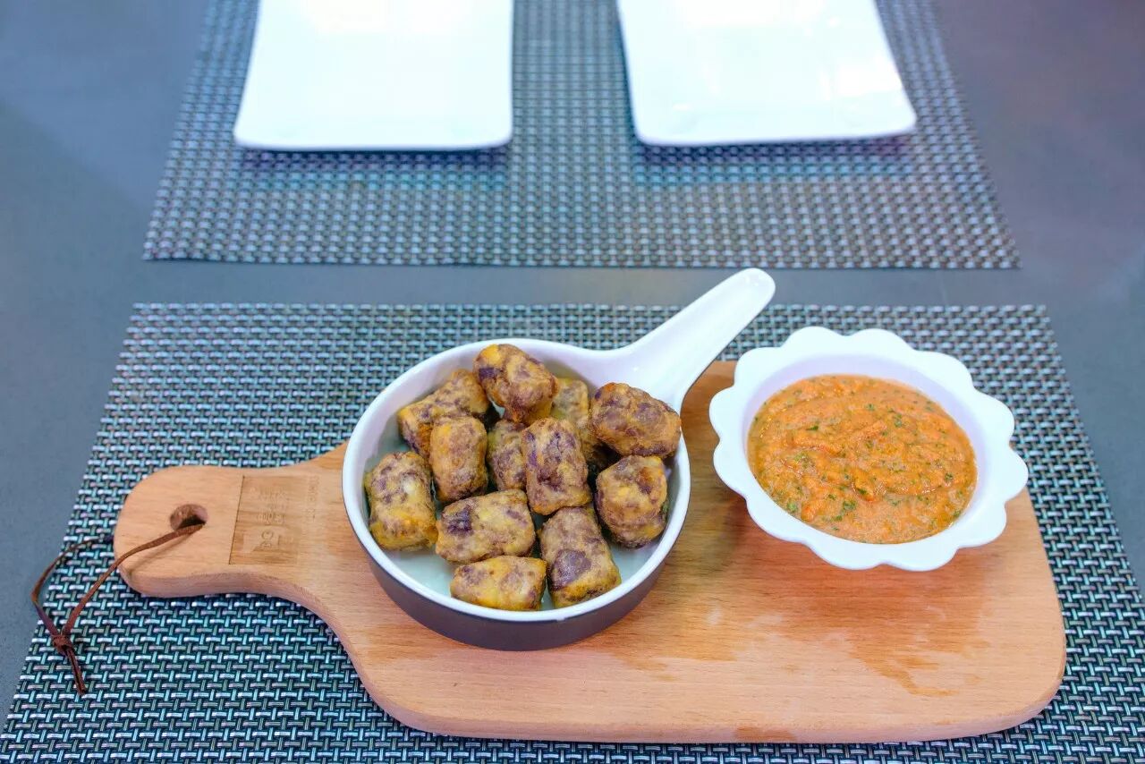 这道“酥炸土豆球”吃起来比薯条还要酥脆而且里面有很多土豆的颗粒感,浓浓的、稠稠的。再配上微辣的酱汁吃起来更加美味可口,可以说这是一道四季皆宜的开胃小吃。