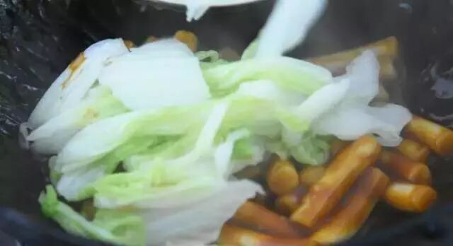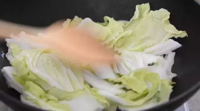 2.热锅冷油,下白菜煸炒,炒软后盛出