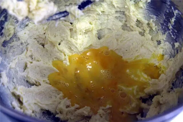 5、再加入鸡蛋搅拌至光滑细致的乳膏状