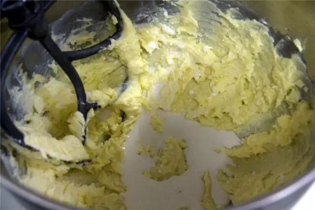 2、黄油室温软化,用电动打蛋器打到乳白状