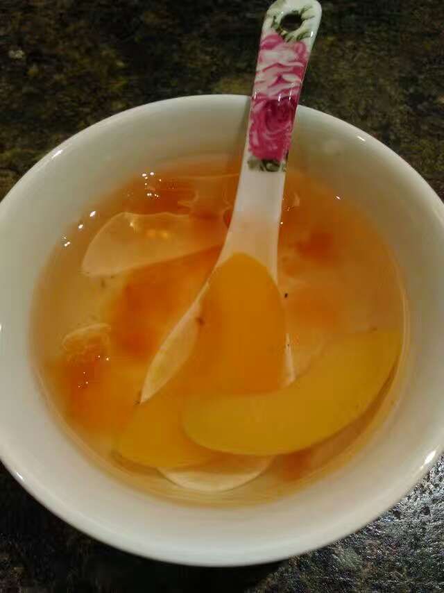 桃胶水果捞需要的原料比较简单,一般就4、5样--桃胶、黄桃罐头、冰糖和一、两种时令水果。