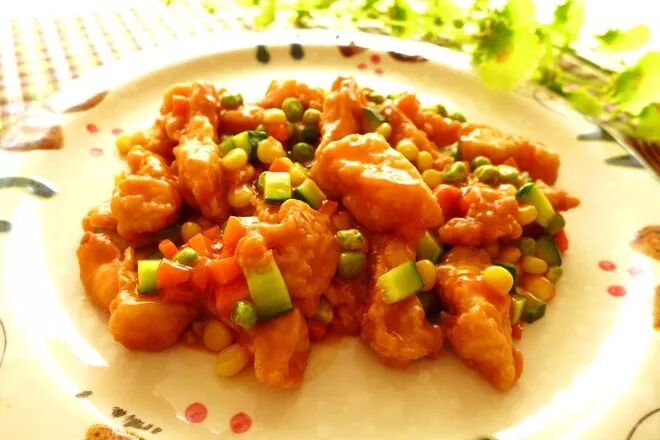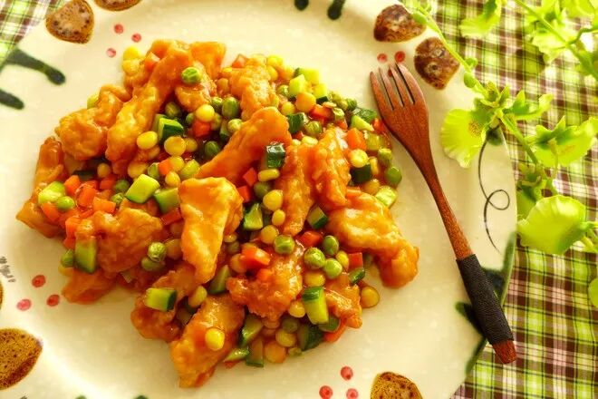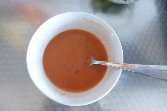 将番茄酱、细砂糖、米醋、5克淀粉,食用盐放入碗中,加入适量清水,调匀备用;