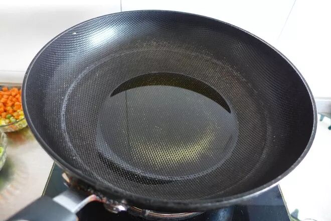 将豌豆粒、玉米粒、胡萝卜丁放入锅中煸炒;