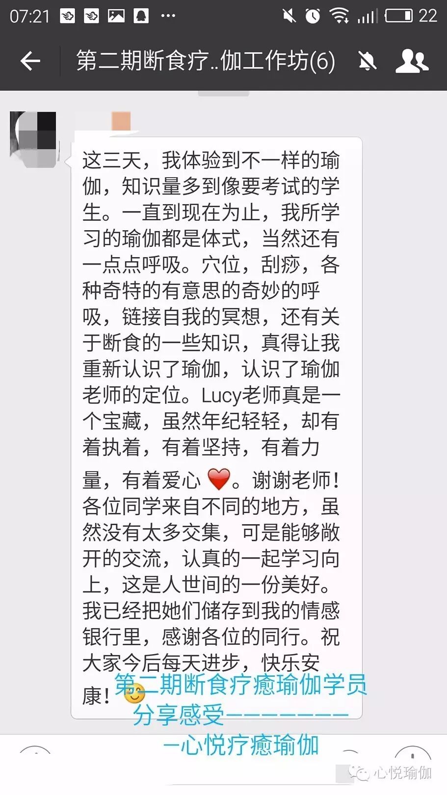 如果您是瑜伽爱好者,想获得更多疗愈身心的瑜伽知识!欢迎加入进来,复训免费!结业颁发疗愈瑜伽证书!在课程中您会感受到各种冥想体验会带您疗愈身心,气息与脏腑原理,面部经络淋巴瑜伽,及瑜伽断食疗法和各种呼吸功法等。期期都有新内容,把三天的上课瞬间和学员感受分享给大家!
