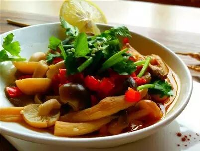 将东古酱油、胡椒粉、味精全部拌入各种菇中抓匀