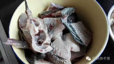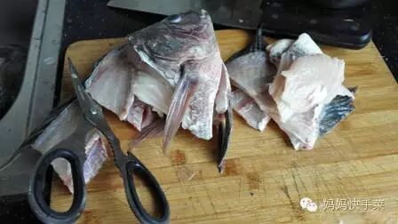 4、脊骨剁开和鱼头备用。
