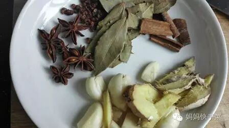 佐料:料酒、淀粉、胡椒粉、葱、姜、蒜10瓣、干红辣椒 、麻椒 30多粒、八角4朵、桂皮2到3cm长4段、香叶6叶、郫县豆瓣酱3汤匙。