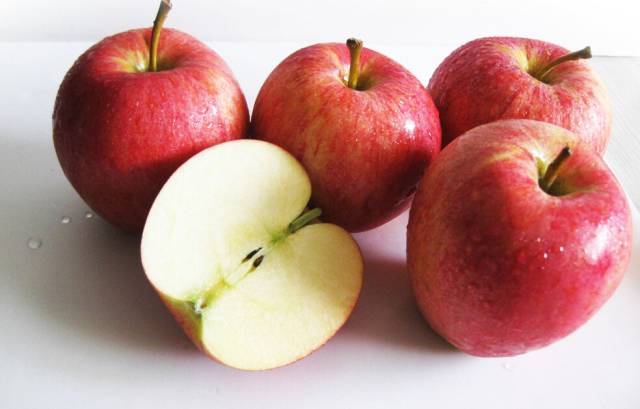 正宗的红富士苹果放在桌子上都是歪的,没有正的,否则肯定不是正宗,颜色不能特别红,有些粉红,且不是红成一片,要挑有许多红丝的那种,还有“肚脐”要陷下去深的,这样才甜。皮上麻点多的,用手指轻轻弹,清脆有回声的,是又甜又脆的。