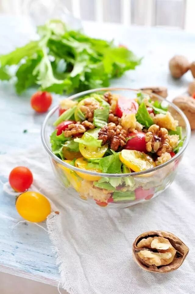 叫大拌菜,用的料自然得有点多。银耳,核桃,红黄小西红柿和苦菊秋葵来自妈妈自种的小菜园,只用了少许橄榄油和黑胡椒,少许香醋和淡酱油和糖,有种独特的风味。香酥的核桃,脆生生的银耳,味酸略带甜味的西红柿,淡淡苦味的苦菊,每种菜都具有不同的口感。