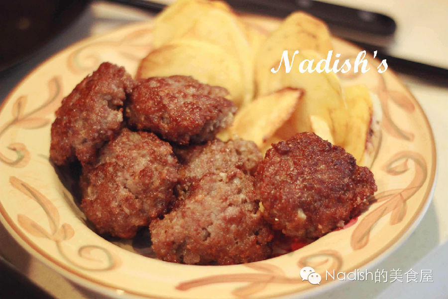 1、肉馅儿准备:绞碎的牛肉,加入洋葱碎、馕渣、两大勺淀粉、一只蛋清、一点花椒粉、盐、姜粉、黑胡椒分,迅速搅拌成肉团,一定要保证肉馅儿比较粘稠,如果不够粘,就再加点淀粉,以保证能定型。