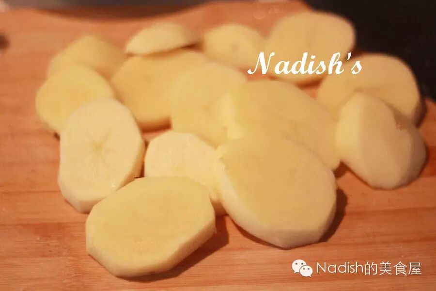 土豆,削皮,切1cm厚的片