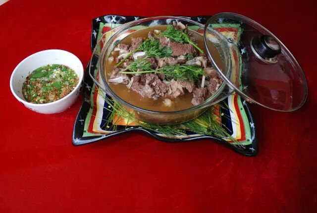 获胜原因:原料为羊肉切片加花椒草果。烹制方法:用木炭火将麻布石头烧红后再放上羊肉烤熟。 特点:鲜嫩可口、无腥味。