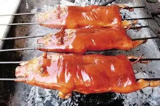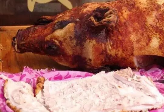 获胜原因:楚雄彝族的烤乳猪是一种具有地方特色的传统佳肴。烤乳猪一般选用刚满双月的瘦肉型乳猪,宰杀褪去毛后,去掉肚杂和四蹄,涂上蜂蜜等各种佐料调制的汁水,然后将全猪挂在小土窑内,用文火烘烤至熟。