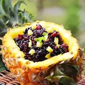 获胜原因:菠萝紫米饭是糯制食品。制作时,首先要把紫糯米用水浸泡七到八小时,然后淘洗干净,与剁细的猪肉搅拌均匀,把准备好的菠萝用刀在其顶端切出一个盖,然后掏去菠萝心,放入紫糯米,再把切去的盖盖上,放到甑锅里蒸熟,当散发出诱人的香味时,即可食用。其味香甜可口,并有补血润肺之功效
