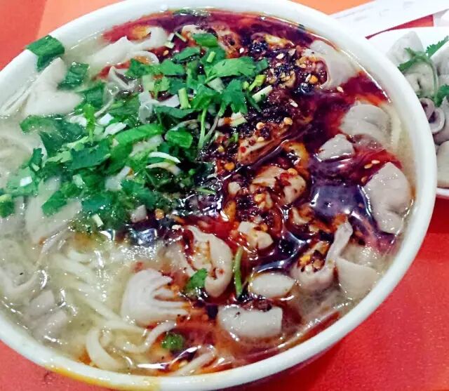 在玉佛寺旁,面条较黄家园更为筋道,肥肠比黄家园软糯,各有千秋。