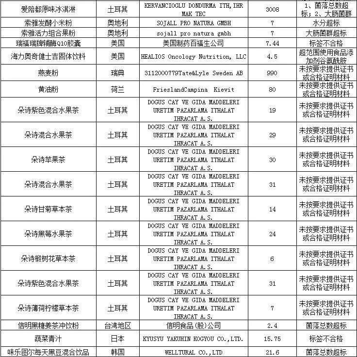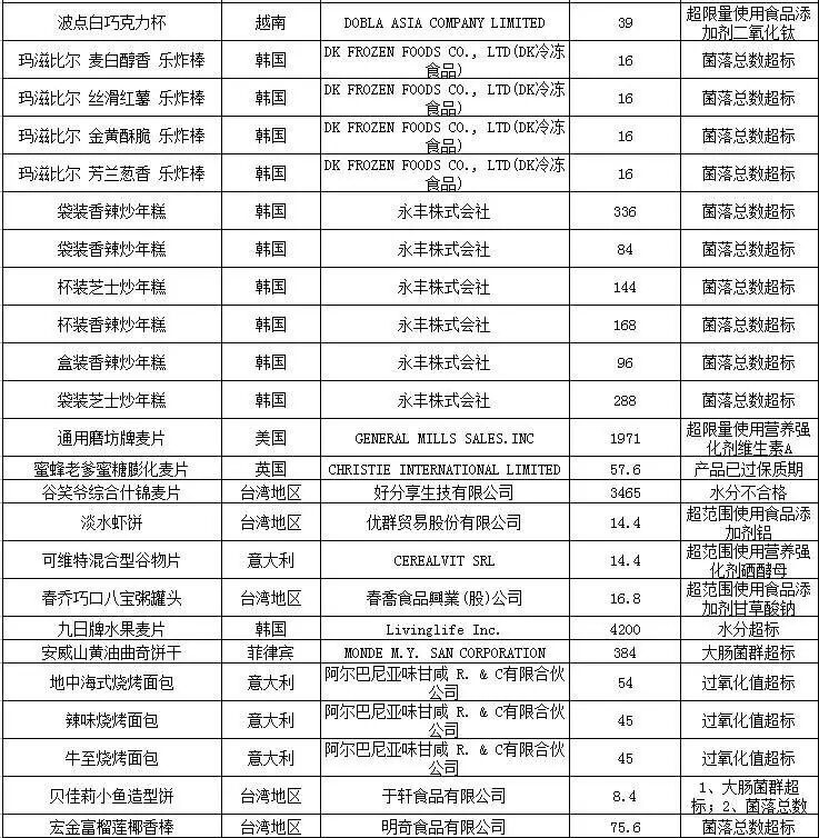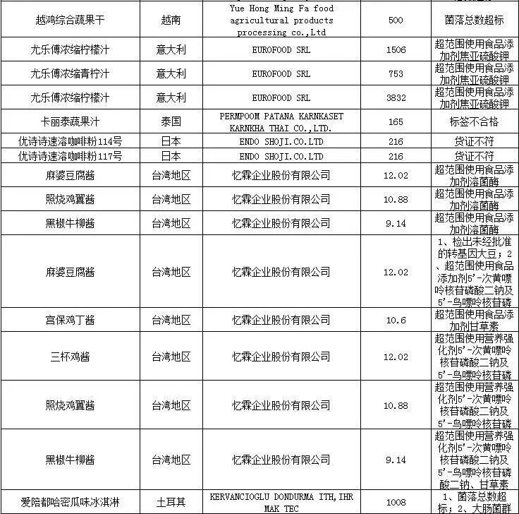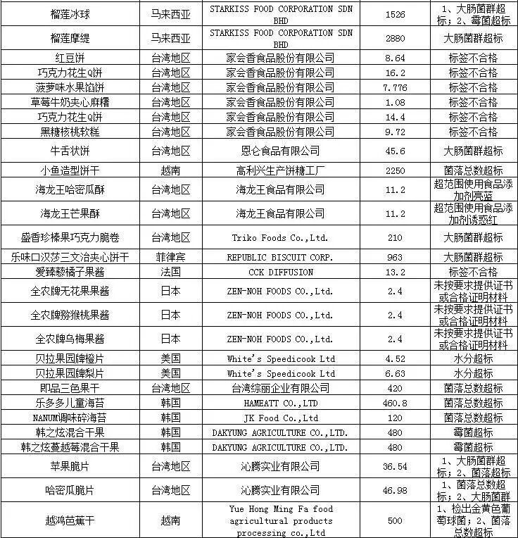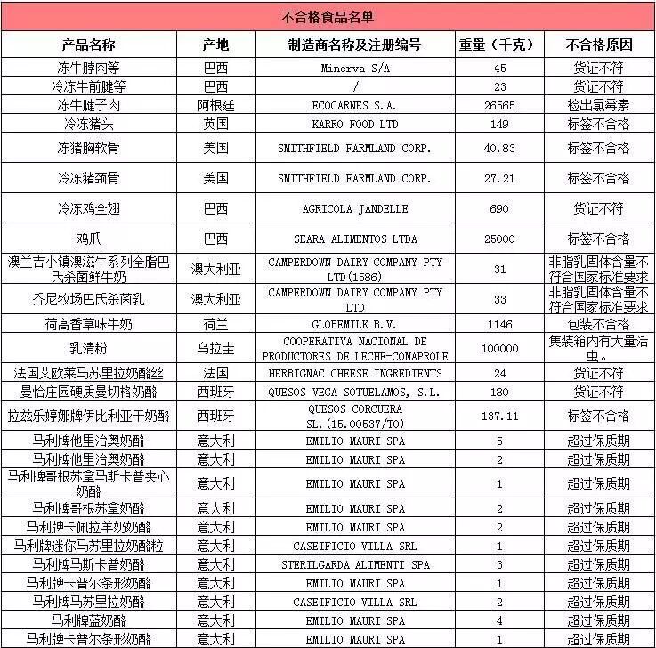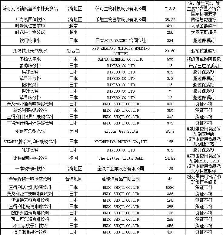注:表中所有批次食品、化妆品的问题是入境口岸检验检疫机构实施检验检疫时发现的,都已依法做退货、销毁或改作他用处理。亲们可以放心啦!