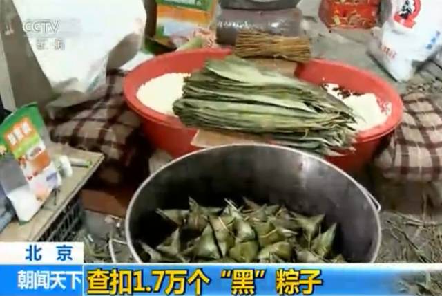 6月1日到2日,北京市丰台区食药监局在一出租大院内查抄了3家生产粽子的黑窝点,现场查扣违法生产的成品粽子17700个,以及糯米、芦苇叶、甜味素、不锈钢桶等食品原料和工具设备。这些黑窝点隐蔽在临建房里,粽子制作和人员休息的地方混在一块,没有消毒设备。经初步调查核实,这些无商标、无厂名的“黑粽子”,主要销往附近的路边摊及小市场。执法人员已将查扣的粽子依法销毁,并且对无证加工粽子的相关人员立案调查。