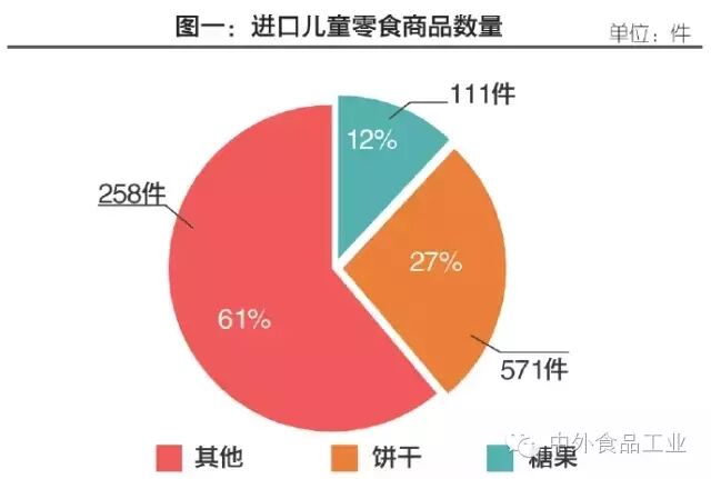 首先,从儿童食品的类别来看,饼干、糖果这两大传统零食类别依然是主流,图一表明,饼干和糖果总体上占到进口儿童零食的39%左右。其中,饼干占比27%,糖果只占12%;这说明进口儿童饼干的量远远大于糖果,而进口糖果的市场空间与饼干相比,还有待更进一步的开发。