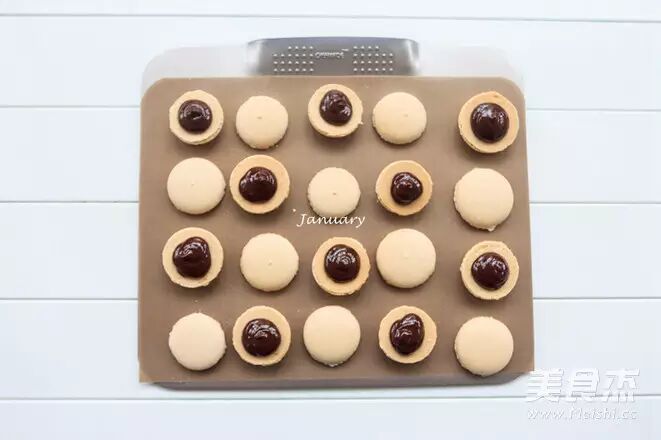 19.将巧克力馅挤在马卡龙上;
