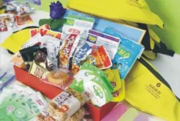 礼包内容:金丝肉松饼、香酥小黄鱼、袋装鲜杨梅、优烙果冻、椒盐曲奇、香酥花生、鸡蛋饼干、竹笋豆干;洗漱用品:牙刷、牙膏、盒;一次性雨衣、运动旅行包;贴心服务指南。