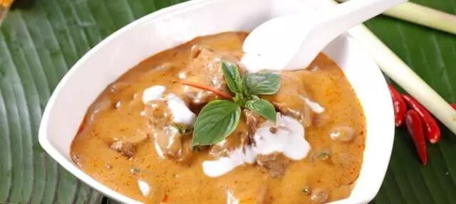 马散麻咖喱是泰国南部家常咖喱的代表,有咖喱香料与椰奶、花生、月桂叶、肉桂、雨露、棕榈糖、罗望子及肉类相互调和而成,咖喱汁浓且带甜味。