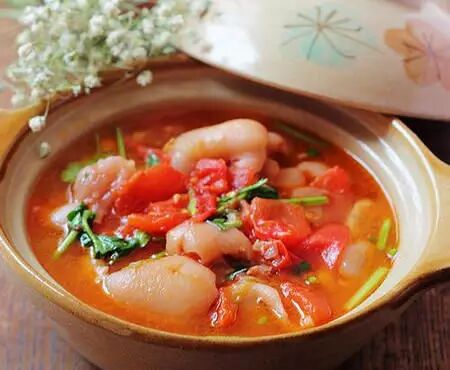 材料:猪蹄2只,西红柿1斤,葱姜,白酒,八角,盐,糖,番茄酱。