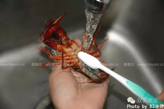 1、捏住小龙虾的背部,放在水龙头下,用小刷子用力把虾表面刷洗干净。(虾腹和龙虾钳拐弯的地方最容易有脏污)