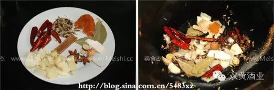1.姜蒜切片,准备好辣椒,花椒,小茴香,陈皮,香叶,白芷,八角,桂皮,甘草,香砂