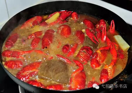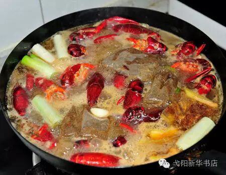 再次开锅后倒入开水,一定要没过龙虾,大火继续烧开,然后小火约十五分钟收一收汁;