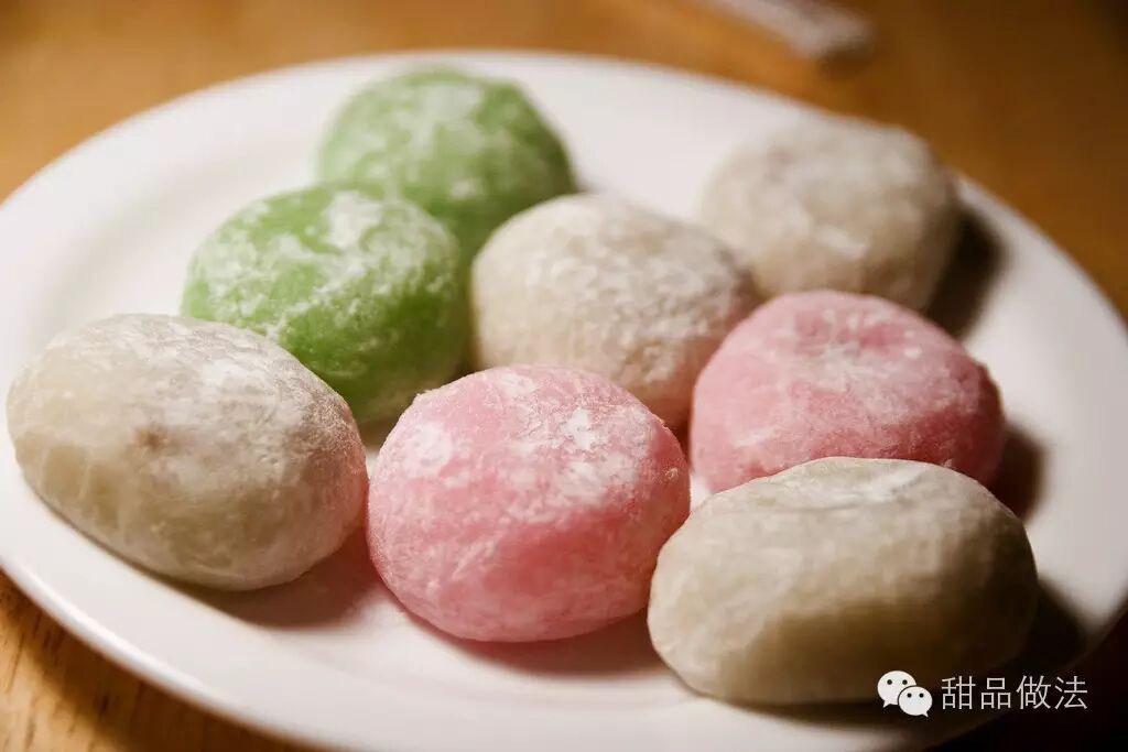 最后就能做出五彩缤纷的台湾麻薯。此外,在熟糯米粉里面也分别加入上述颜色的粉末,黄色可用炒熟的黄豆粉滾匀麻薯,如果有椰丝的话,撒一点椰丝在上面,效果会很淸新可爱。