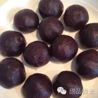 5. 自制花生馅:将炒熟的脱皮花生米在料理机里粉碎,加入细糖粉,甜度自行掌握,再加入一茶匙的熟猪油,一茶匙炒熟的白芝麻,揉捏成团分成小块,再揉圆。另外将豆沙馅分成块,体积是花生馅的一倍大,也揉圆备用。