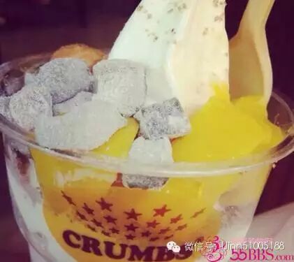 CRUMBS,香港很火,排队很长,完爆所有酸奶冰激凌店!热量低,口感细腻丝滑,浓郁,多了浓厚奶香少了酸奶的酸涩,跟冻酸奶完全不是一种感觉!各种配料选择,水果、硬糖、糯米糍、朱古力布朗尼等。减肥的可以放纵下啦!