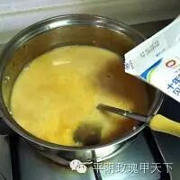 4. 加入牛奶,要注意牛奶加得不要比水多。