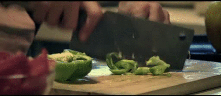 3、用水果刀尽量在小蕃茄蒂的正中央的上边对半切开。