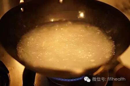 3. 准备一个炒锅,开小火,锅热后倒入一点点油(一点点哦,够炒瑶柱就行了),下瑶柱进去,爆香。