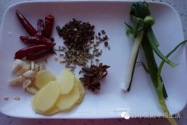 葱姜蒜,八角,花椒,辣椒,茴香籽备好。