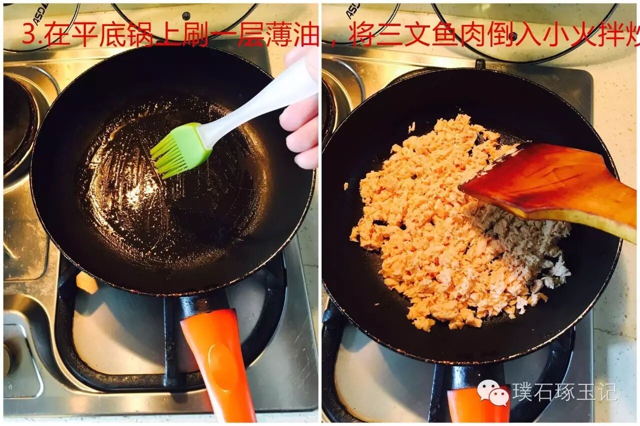 三文鱼松的做法超级简单,如下: